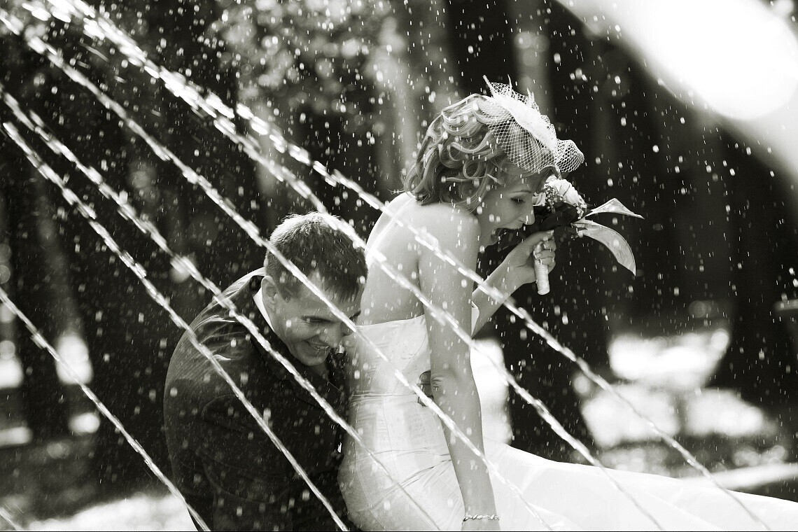 Я предложил паре присесть на бортик у фонтана, поиграть с водой, расслабиться. Но вышло иначе. К моему удивлению и шоку невесты, ее просто окатило струей воды. Снимок получился внезапным и очень эмоциональным. А главное — искренним.