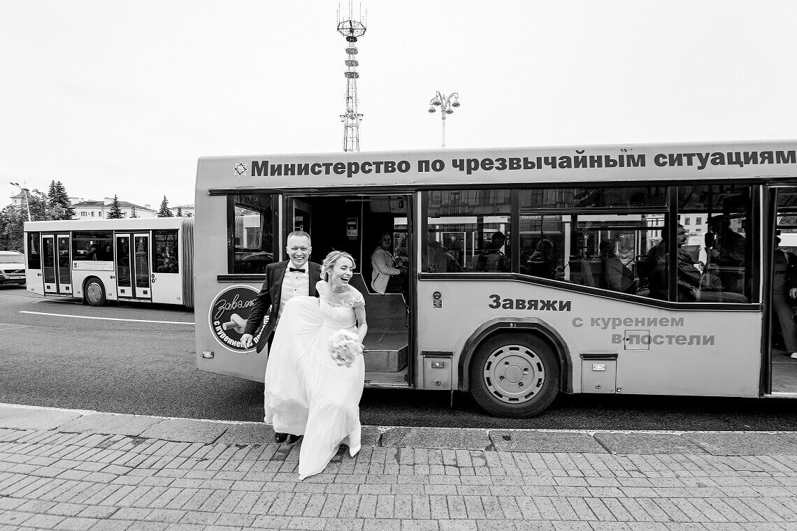 — Фото было недавно, на свадьбе замечательной веселой пары Кирилла и Ольги. Мы были на площади Победы и решили немного подурачиться. Я предложил паре заскочить в стоявший на остановке автобус. Из нескольких кадров мне понравился именно этот. Невыдуманные, настоящие эмоции всегда лучше и эффектнее постановочных фото — за это их и ценят.