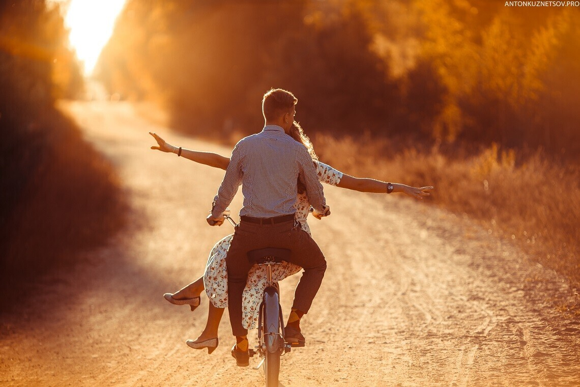Как и большинство моих любимых работ, снимок сделан на природе, осенью на закате. В это время свет становится золотисто-оранжевым, наполняя теплом окружающий пейзаж, а угол падения солнца красиво очерчивает пару контражурным светом. Сюжет этого фото олицетворяет идею движения по дороге жизни вдвоем влюбленной пары, но лучше, когда сам зритель поймет смысл — ведь красота находится в глазах смотрящего.