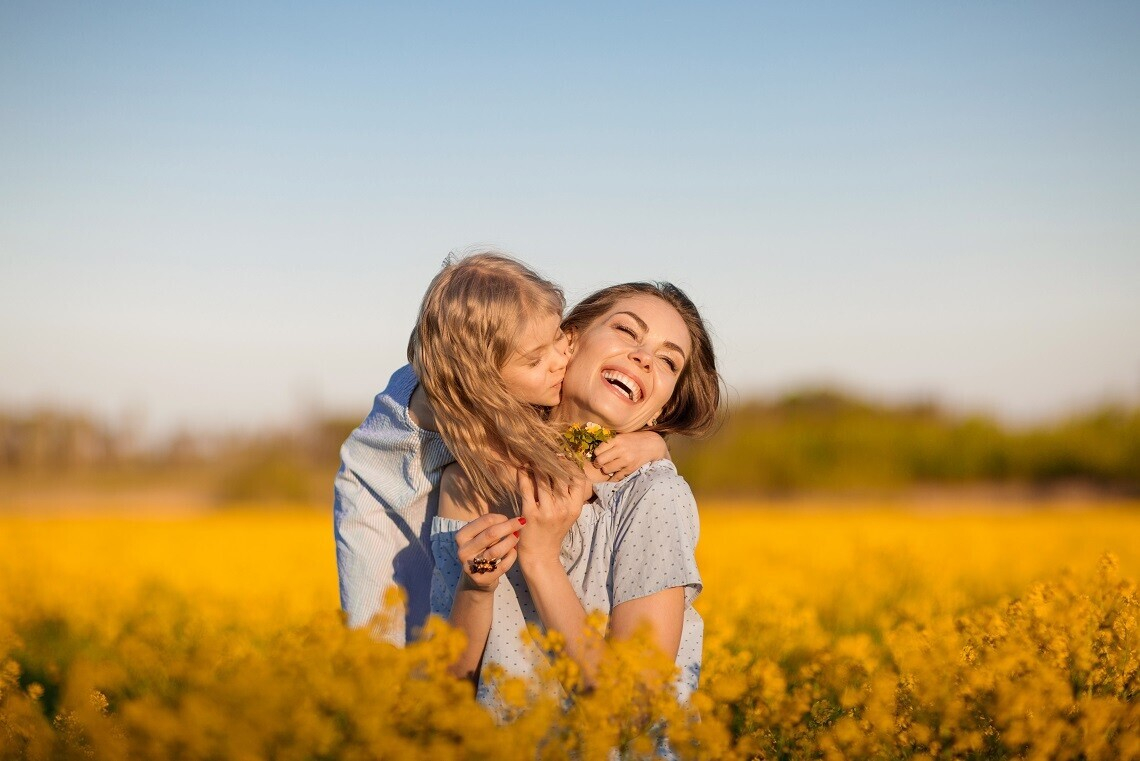 Увидела поле во время велопрогулки, и сразу захотелось теплых солнечных фото. Сразу пришла идея, что на снимке должны быть именно мама и дочка. И так сложилось, что на следующий день мы уже фотографировались. Вдохновение совпало с возможностью. В итоге мы получили целую серию красивейших и эмоциональных фото.