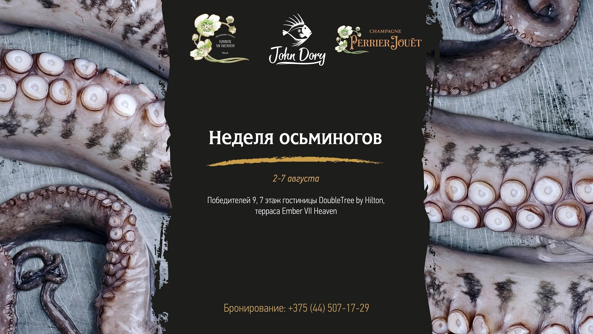 Со 2 по 7 августа шеф-повар террасы Ренди Екатама Михарджа готовит блюда из охлажденного осьминога, которого самолетом специально доставляют из Италии. Гости смогут заказать классический картофельный салат со щупальцами осьминога (22 рубля), пасту (31 рубль), а также гриль-осьминог в компании с пюре из сельдерея и ремуладом (46 рублей). В пару к блюдам из осьминога кависты Ember VII Heaven рекомендуют шампанское Perrier-Jouёt Grand Brut.