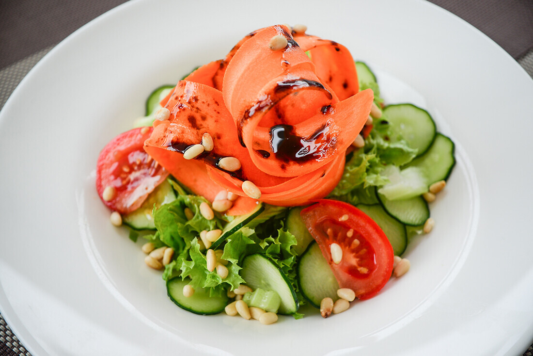 Зеленый салат с кедровыми орешками