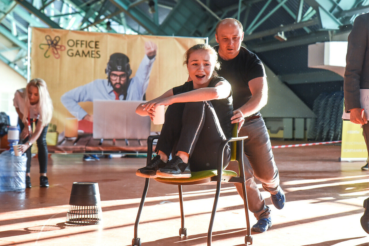В Минске прошел чемпионат по офисным играм (да, уже и такой есть!), где соревновались играть в офисный баскетбол и хоккей, гоняли на креслах и состязались в других необычных видах «спорта». Чемпионат организовали с размахом — с парадом спортсменов, выступлением команд чирлидинга, зажигательной музыкой и ярким комментарием. Предлагаем посмотреть, как прошли эти необычные соревнования.