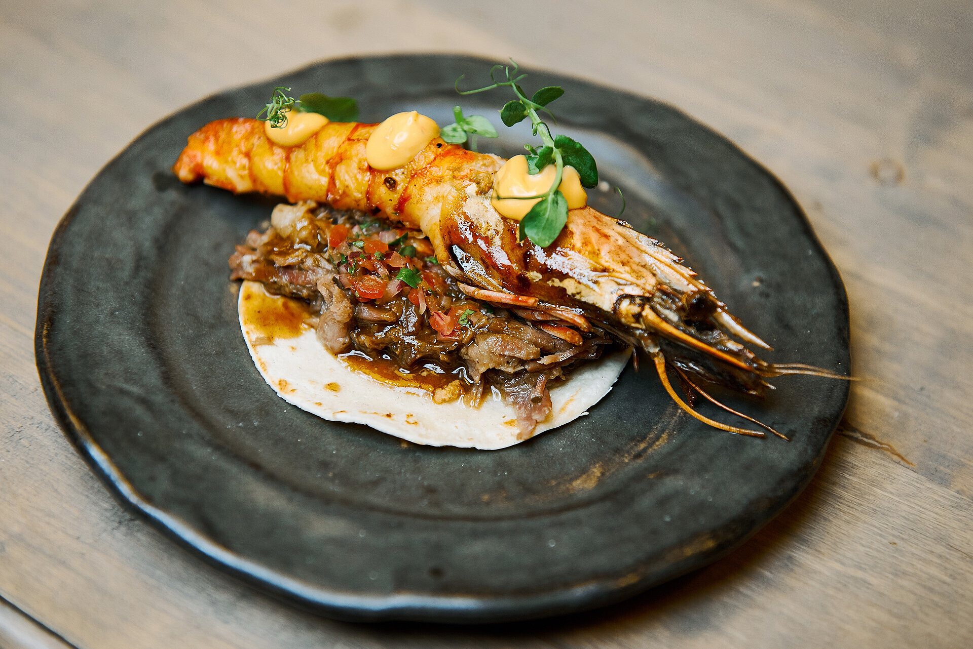 4. Тако со свиными щечками pico de gallo и красной креветкой (Хави Эстевез)