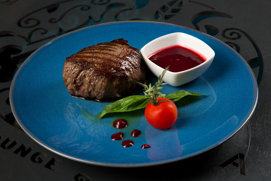 Стейк из говядины с соусом из клюквы и можжевеловой ягоды — 180 г/21 BYN