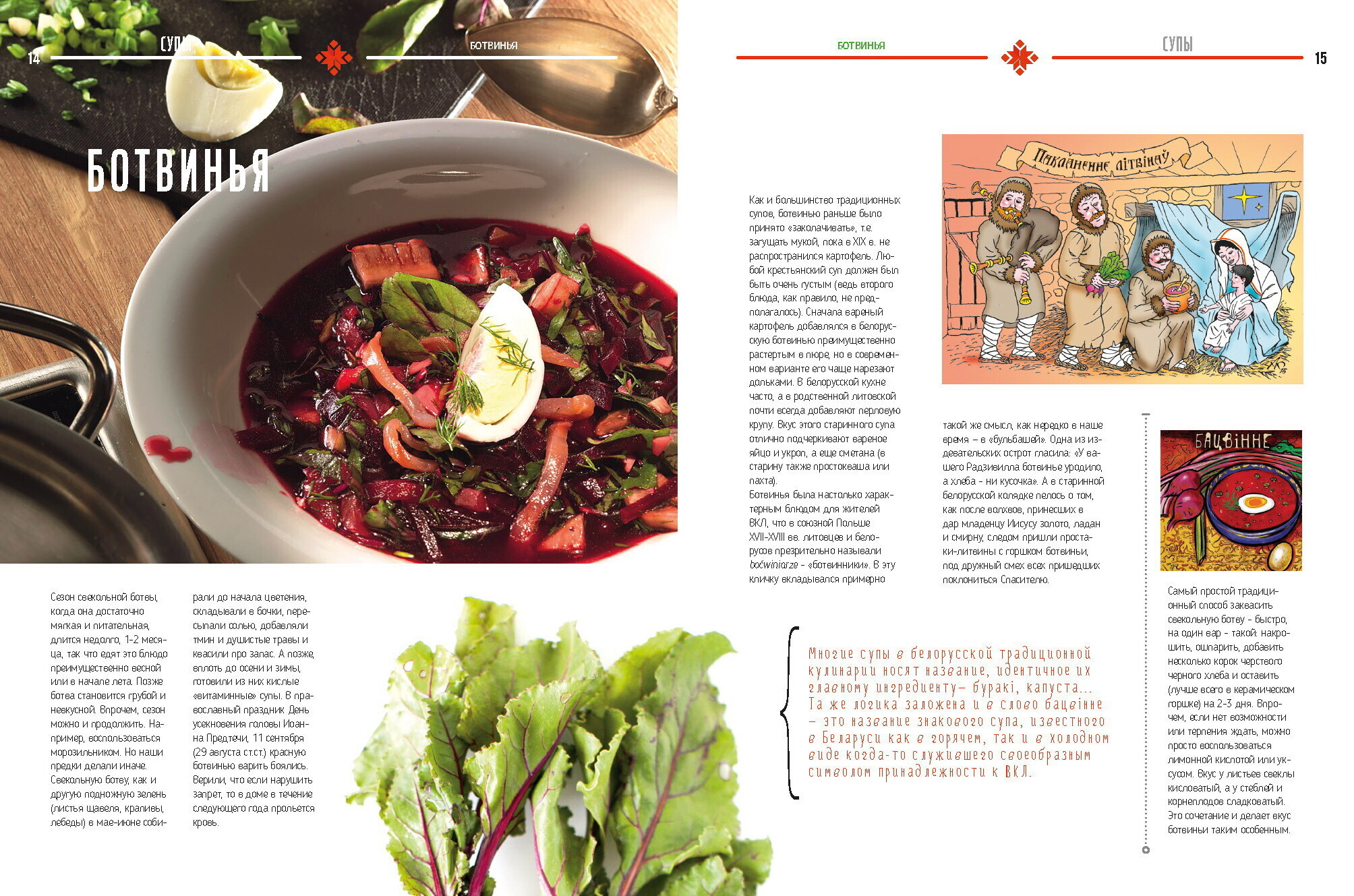 Новое издание посвящено богатому историческому наследию белорусской кухни: книга рассказывает о рецептах и истории возникновения 41 блюда и 8 напитков. Ее выход запланирован на конец декабря 2018 года.