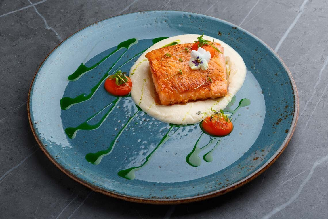 Филе норвежского лосося с соусом из облепихи и апельсина.