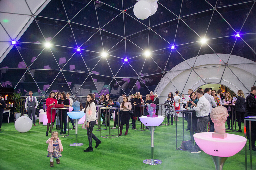 Ультрасовременный внешний вид конструкции напоминает большой прозрачный шар, внутри которого можно организовать любое мероприятие: от шикарной свадьбы или корпоративного мероприятия до презентации и выставки. Панорамный шатер круглой формы органично вписывается в пространство и способен создать незабываемую атмосферу.