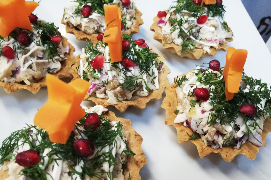 Тарталетки «Елочка», фаршированные мясным салатом — 200/8,50 BYN