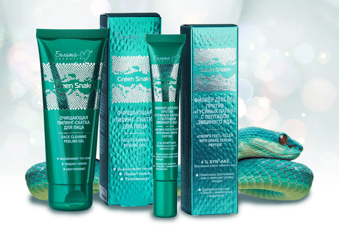 - Филлер для век против «гусиных лапок» с пептидом змеиного яда;