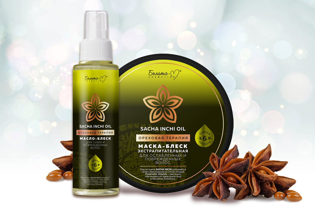 Серия средств создана на основе уникального легкого ультрапитательного масла ореха Sacha Inchi, действие которого усилено маслами миндаля, ши, лесного ореха, оливы, кокоса: благодаря высокому содержанию omega 3-6-9 кислот и антиоксидантов они помогают сделать волосы более здоровыми и блестящими.