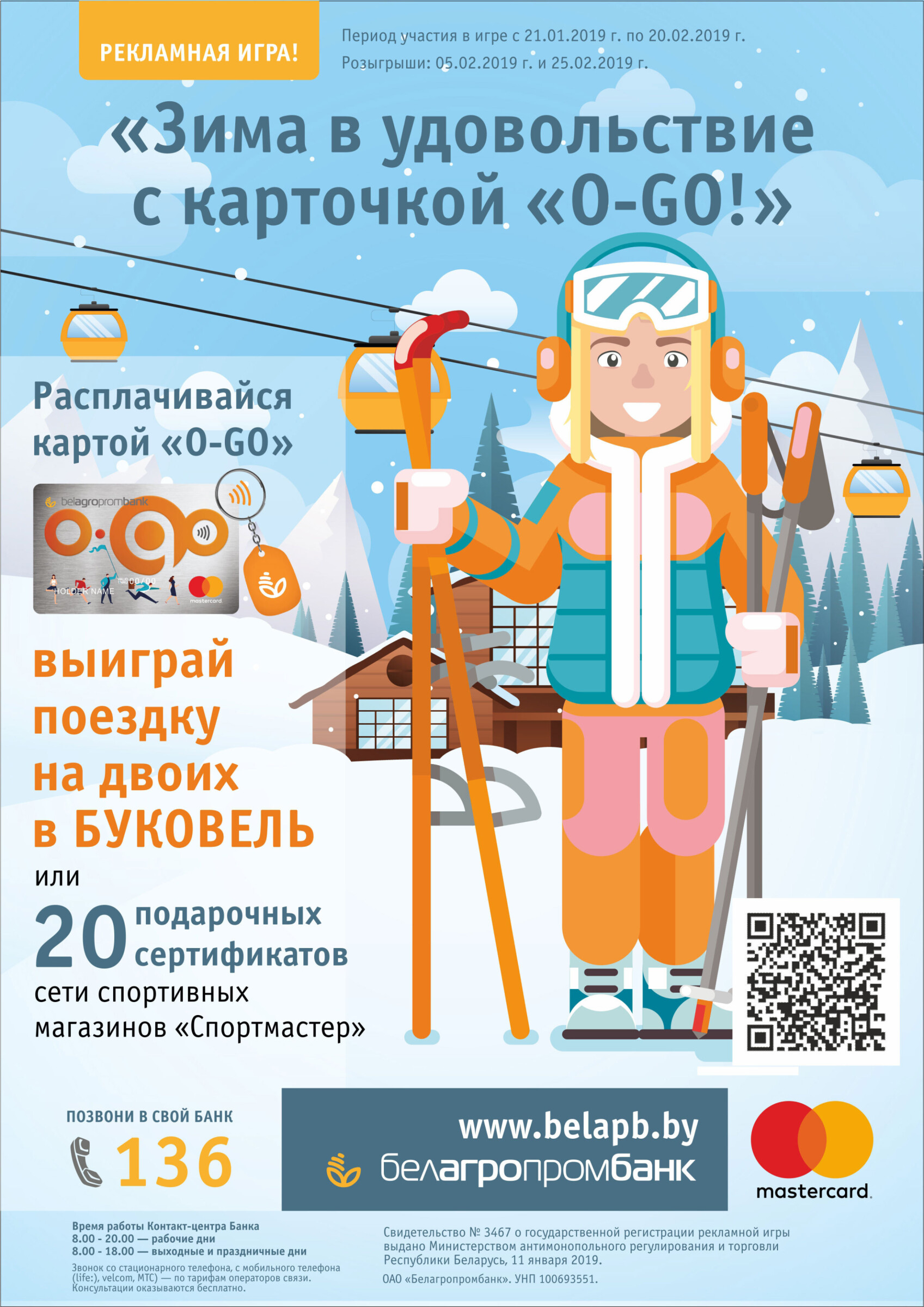 Белагропромбанк устраивает розыгрыш для держателей платежных карт Mastercard World «O-GO!». На кону поездка в «Буковель» для двоих и другие призы. Участвовать в рекламной игре «Зима с удовольствием с карточкой «O-GO!» можно с сегодняшнего дня. Подробнее о проведении игры можно узнать на сайте Белагропромбанка.
