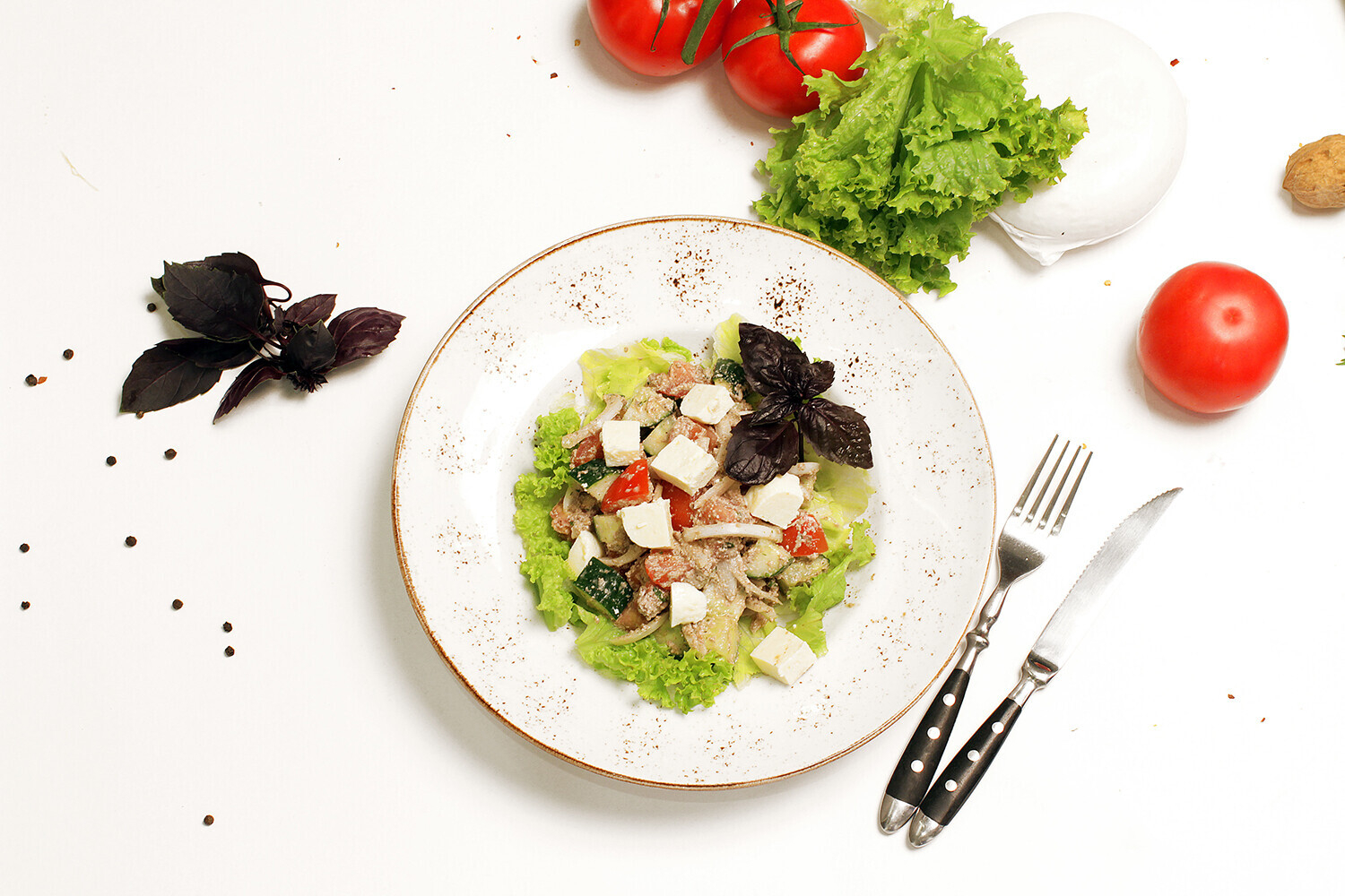 Описание: салат из свежих овощей с ореховой заправкой и Адыгейским сыром
