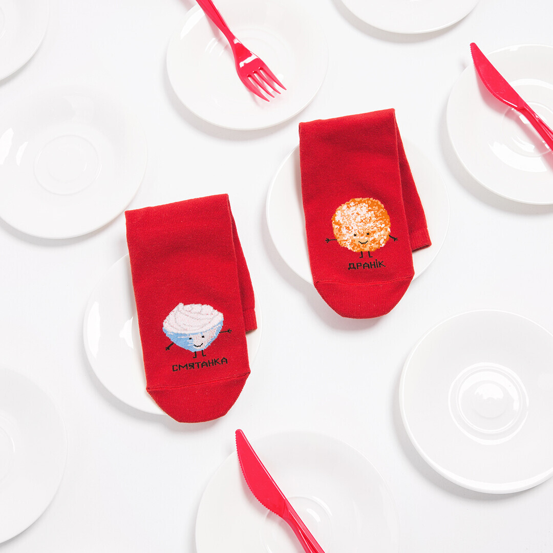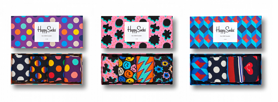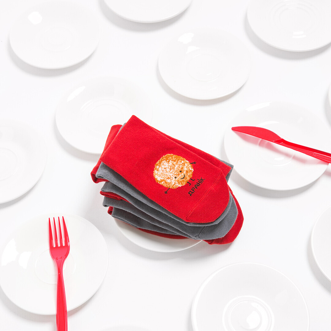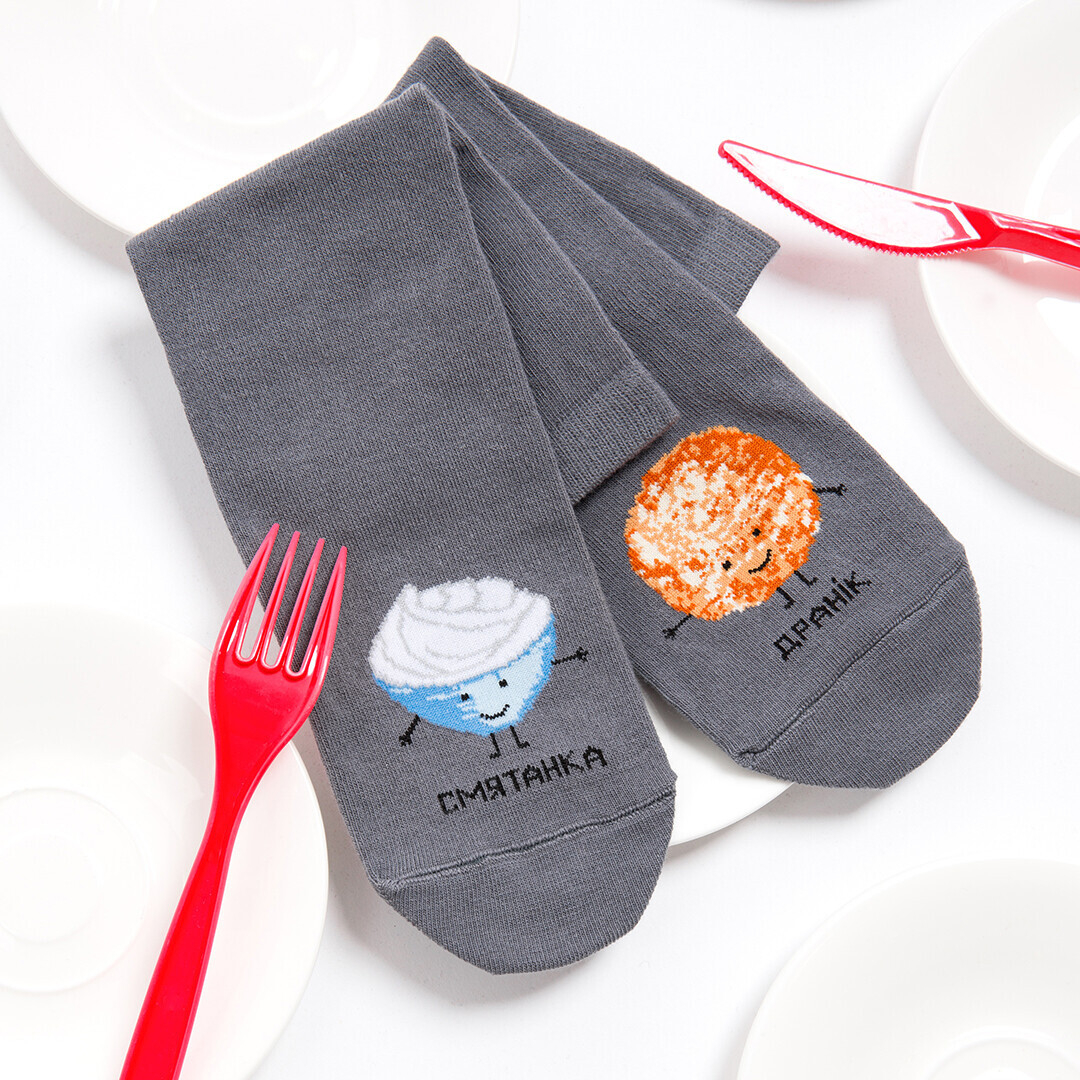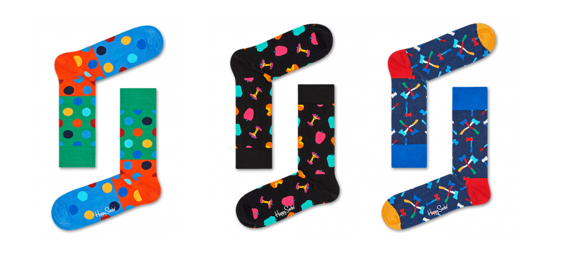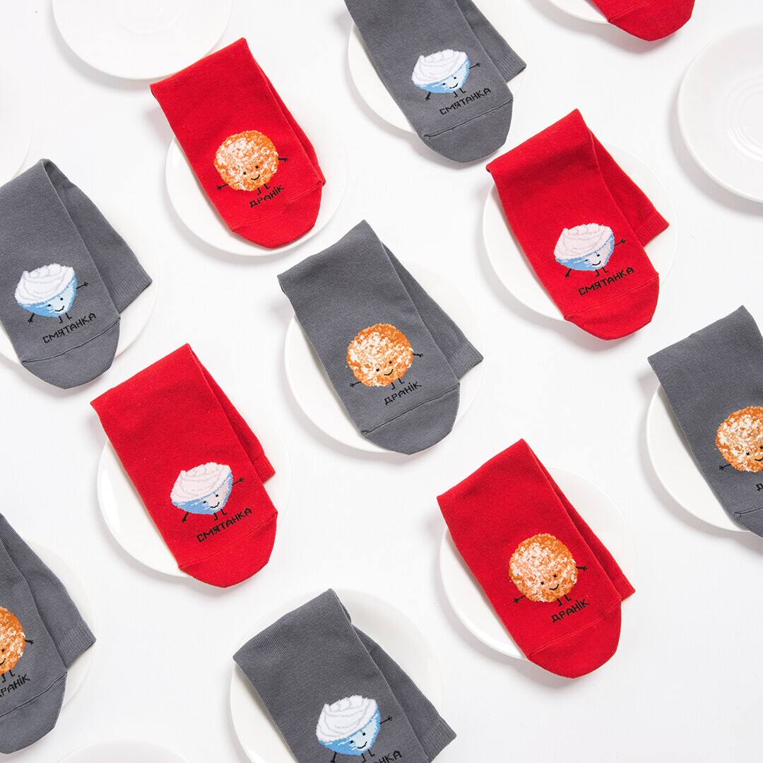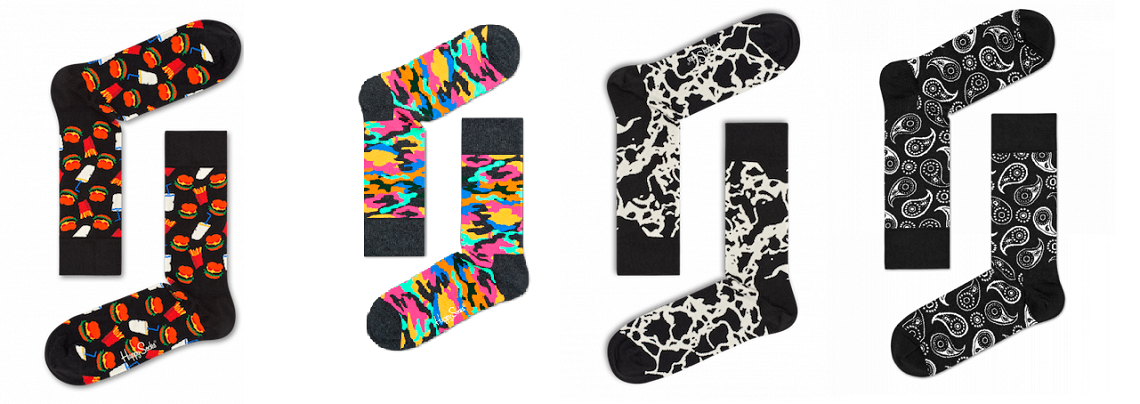 Если вы ищете оригинальные носки с яркими принтами, у бренда Happy Soсks их целый арсенал. Здесь вы найдете модели с яблоками и огрызками, гамбургерами и картошкой фри, смайликами, сердечками и другими веселыми цветными изображениями. Правда, нужно приготовиться к тому, что за пару придется заплатить 19 руб., а за праздничный набор и все 50-70 руб.