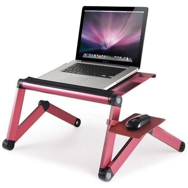 Алюминиевая столешница эффективно отводит тепло — ноутбук не перегревается, даже если работать за ним целый день. В некоторых столиках и предусмотрены встроенные вентиляторы. В сложенном виде столик-трансформер занимает минимум места — его удобно брать с собой за город или в парк и работать на свежем воздухе.