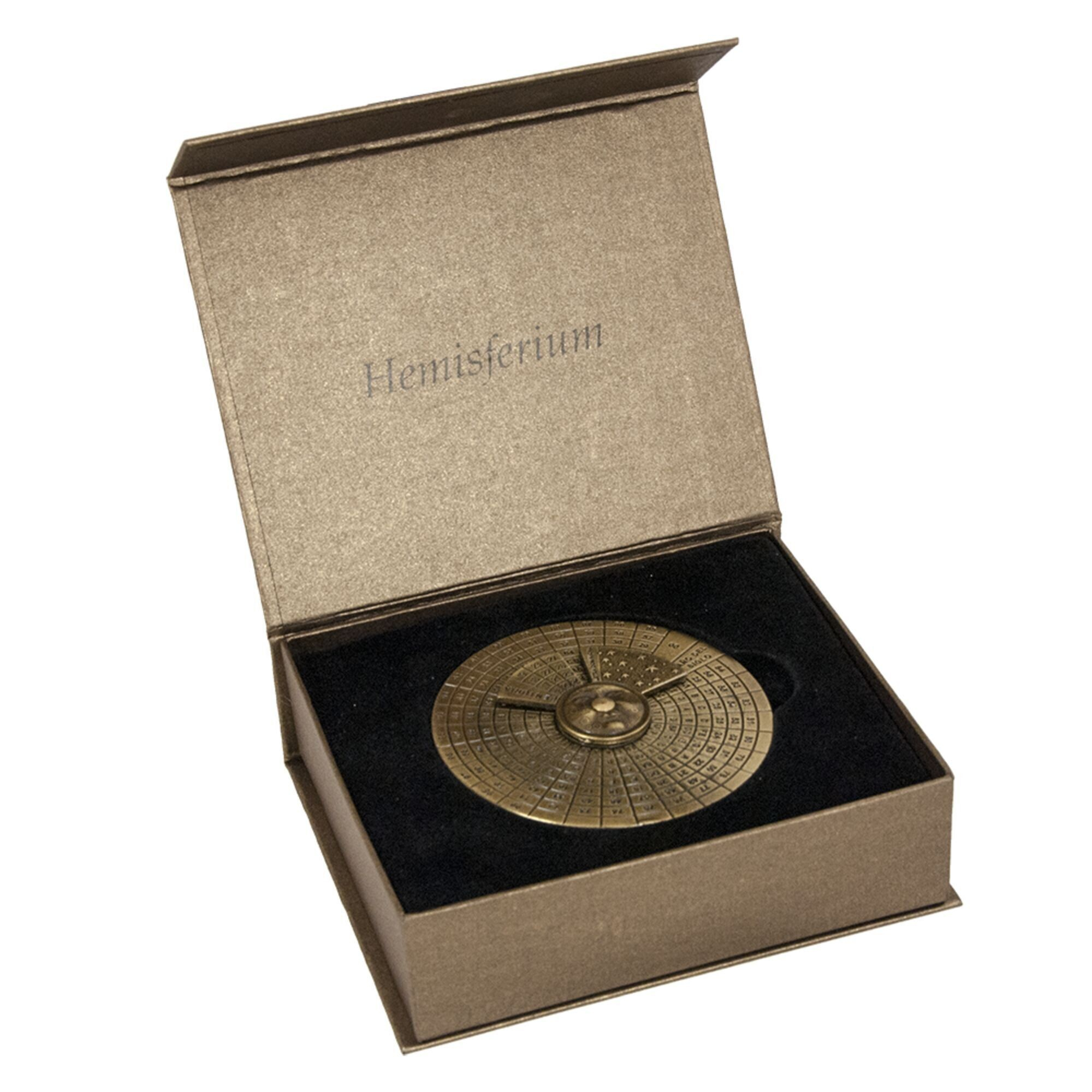 Вечный календарь — это одновременно полезная вещь и красивый сувенир, который украсит рабочий стол. Обратите внимание на вечный календарь Perpetuo от испанской фирмы Hemisferium — это точная копия старинного вечного календаря, воссозданного по старинным книгам и чертежам: с его помощью можно определить день недели любой даты.