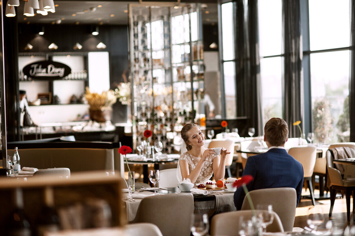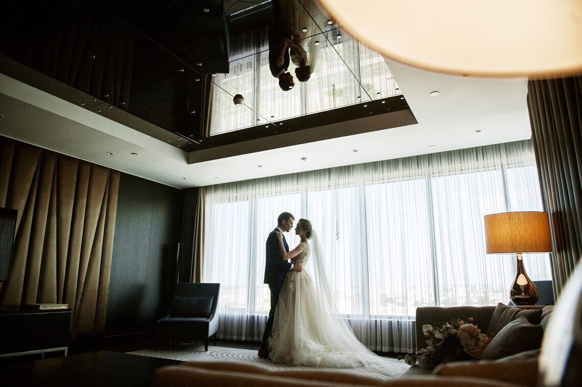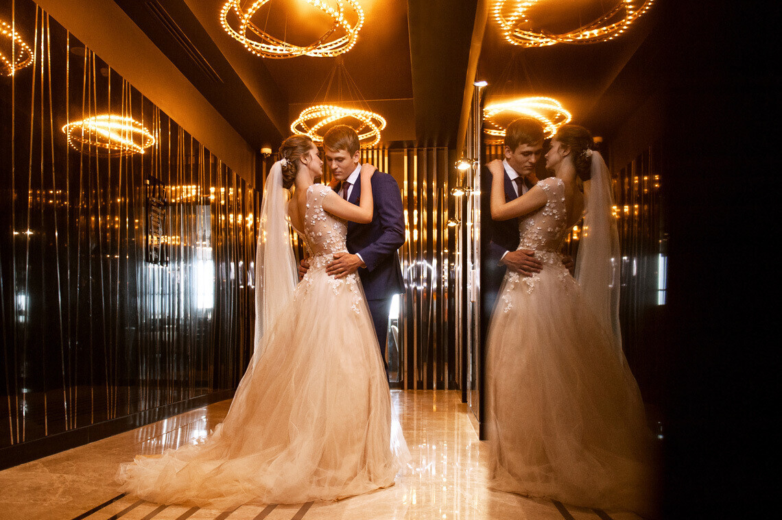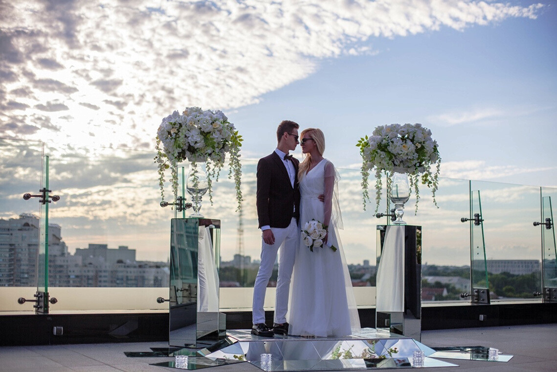В отеле созданы все условия для проведения свадеб, начиная от организации девичников и мальчишников в частной караоке-комнате скай-бара BAR:DOT XX1 до романтического завтрака в статусе семейной пары в ресторане Ember или в выбранном женихом и невестой номере.