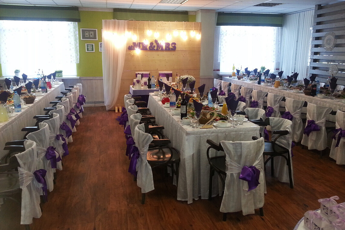 Зал кафе «Пралеска» готов вместить до 60 гостей. В заведении можно легко организовать выездную регистрацию брака и само торжество. Для этого в кафе есть музыкальная аппаратура, подборки популярной музыки для разных возрастов и, конечно, место для танцев.