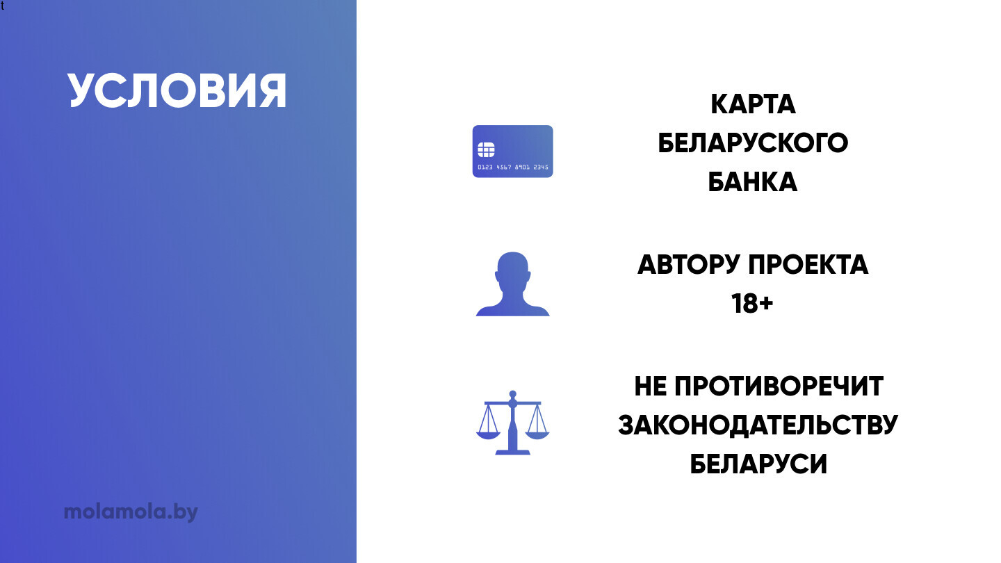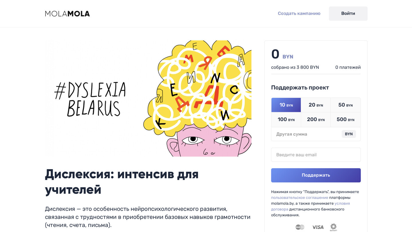 На сайте molamola.by уже есть активные кампании, которые можно поддержать.