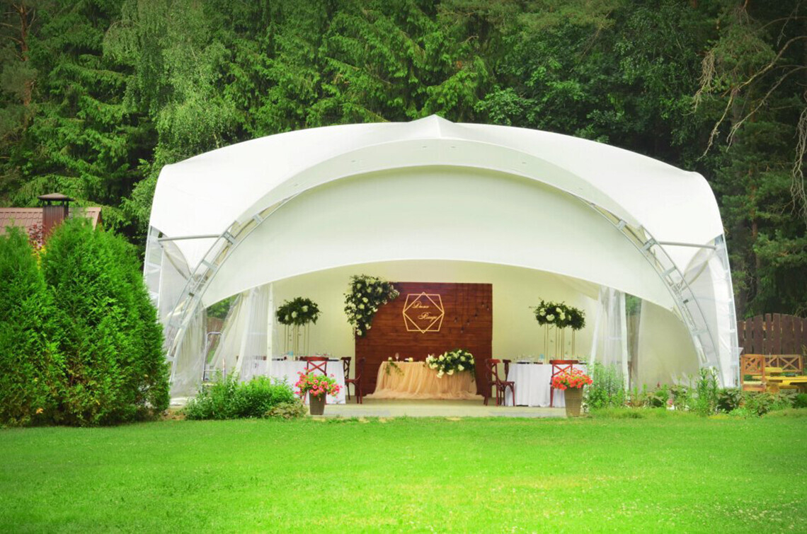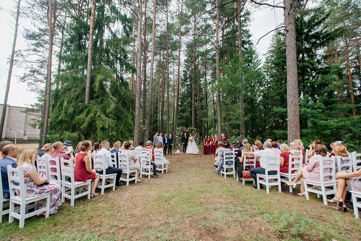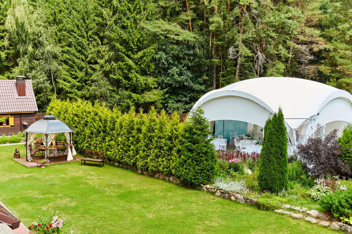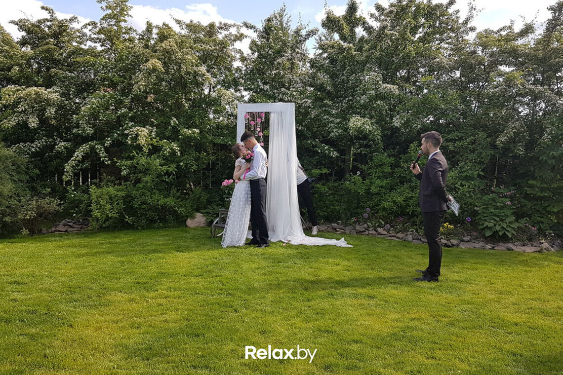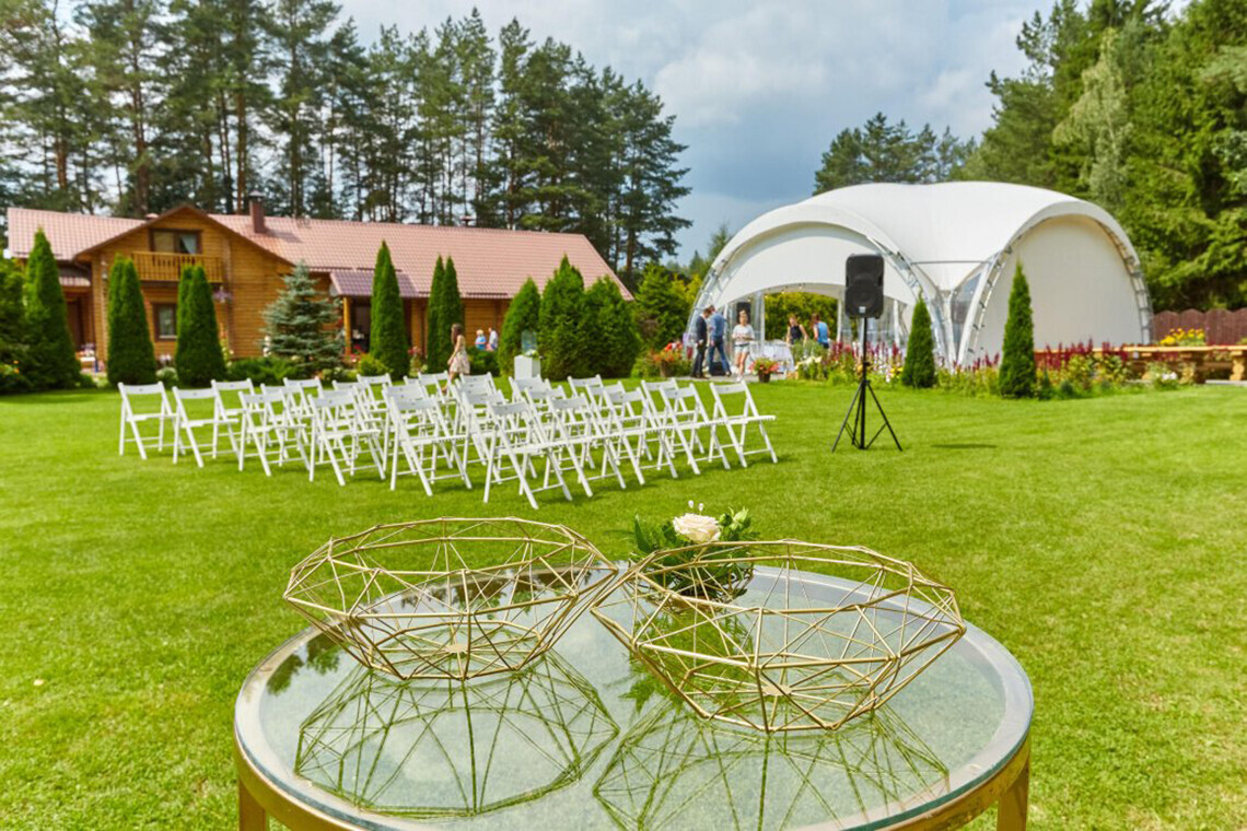 Есть место для выездной регистрации брака — рядом с прудом на фоне леса. По желанию можно организовать трансфер, кейтеринг, заказать профессиональные услуги ведущего, музыку, арендовать видеопроектор и экран.