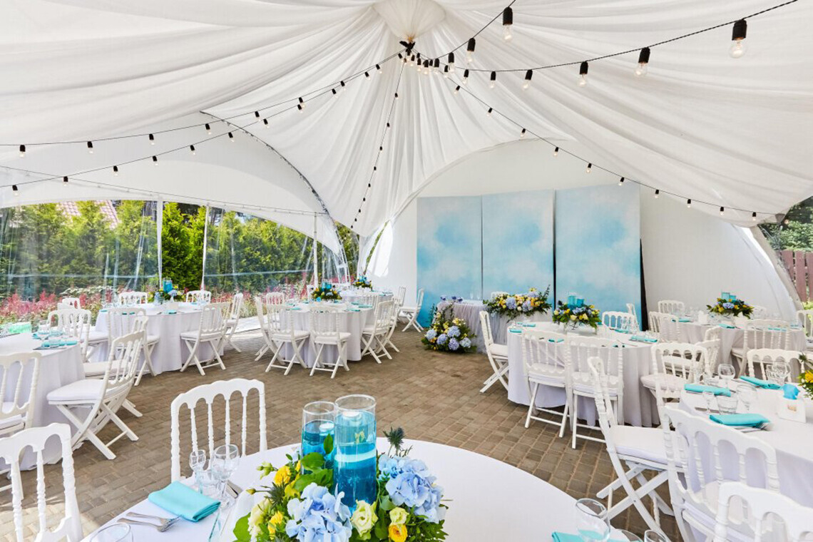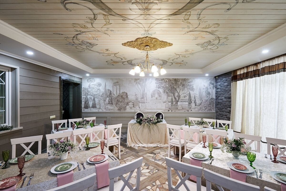 Банкетный зал пропитан духом Италии и готов принять до 50 гостей. Также провести торжество можно на свежем воздухе: на специальной площадке или террасе площадью 60 квадратных метров — отличная альтернатива шатрам и беседке.