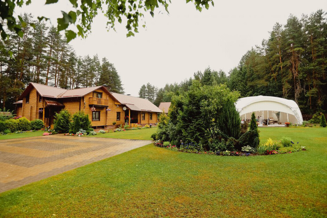 Двухэтажная усадьба площадью 500 квадратных метров находится в 30 минутах езды от Минска и располагает 12 спальнями для гостей и двумя отдельными VIP-комнатами для молодоженов.