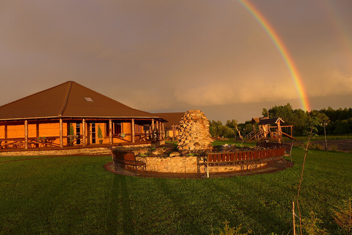 На ночь гости свадьбы могут расположиться в одноэтажной гостинице с пятью арт-номерами, где окунутся в особую атмосферу, которая создавалась хозяином хутора с помощью изделий ручной работы и старинных элементов: белорусской печи, сделанной из трех тысяч кирпичей, картин, вышитых еще прабабушкой. При строительстве усадьбы использовались исключительно природные, экологически чистые материалы: натуральный камыш, дерево, камень, дранка.