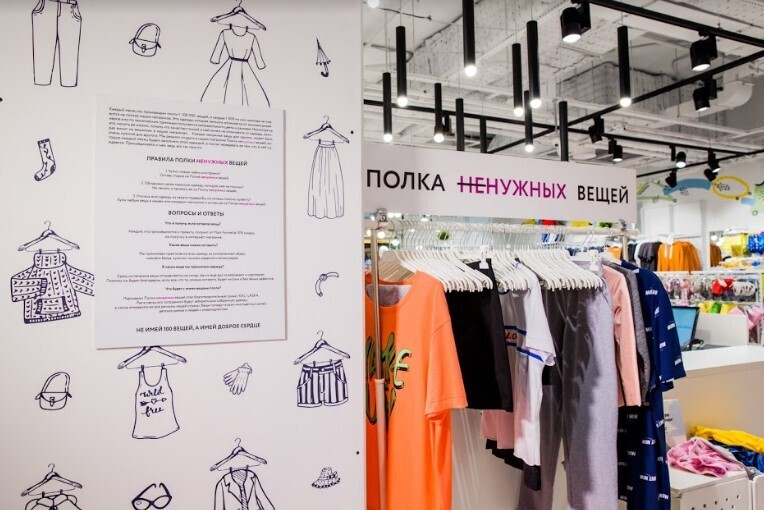 Белорусский бренд одежды Mark Formelle совместно с общественной организацией KaliLaska установили Полку ненужных вещей в ТРЦ Galleria Minsk. Минчанам предлагают приходить в торговый центр в старой одежде и оставлять ее на Полке сразу после покупки новых вещей.