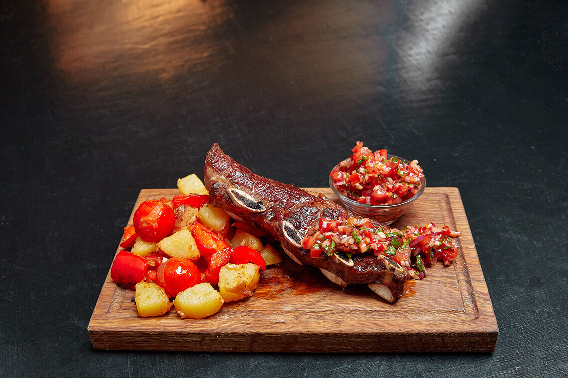 В набор входят: ребра Кальби, очищенный чеснок, свежий перец, свежий картофель, свежий томат, томат черри, перец чили красный, красный лук, петрушка, соус сальса и, конечно, инструкция по приготовлению блюда. Выход одной готовой порции — 665 грамм.