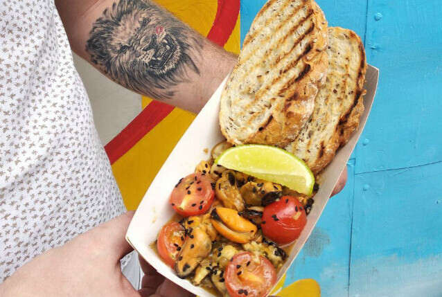 Мидии не частый гость на фуд-кортах, но V_YGLI готовы разнообразить фестивальное меню и удивить посетителей мидиями в имбирно-чесночном соусе за 10 рублей. Блюдо придется по вкусу любителям морепродуктов и азиатской еды. Отличным дополнением к нему станут бокал холодного пива или белого вина.