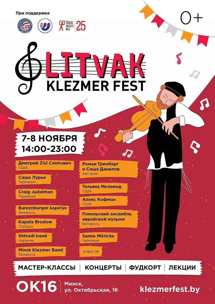 Бесплатный фестиваль еврейской культуры и клезмерской музыки Litvak Klezmer Fest пройдет 7 и 8 ноября на ул. Октябрьской, 16. В рамках праздника будут организованы творческие мастер-классы, танцевальные уроки, выставки и фуд-корт.
