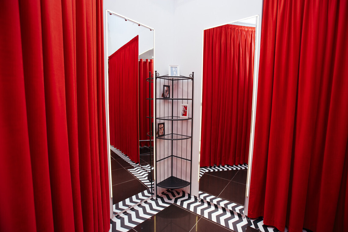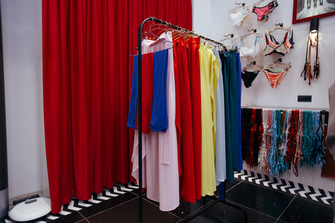 Сейчас комплекты создают профессиональные швеи, я же отвечаю за творческую составляющую: дизайн, модели… Эту студию на Немига, 3 мы готовили около полугода. Практически все делали сами. Очень хотелось, чтобы это было похоже на будуар с элементами «Твин Пикс». Открылись 22 июня. И, как мне кажется, получилось очень уютно: приходя к нам, гости разуваются, поэтому в магазине при большом желании можно даже поваляться на ковре! Здесь всегда чисто, по полу «бегает» робот-пылесос — ну прямо, как дома, когда приходишь в гости к лучшей подружке. Здесь тебе дадут честный совет: что идет, а что — не очень, помогут сделать фото на телефон и даже нальют чай.