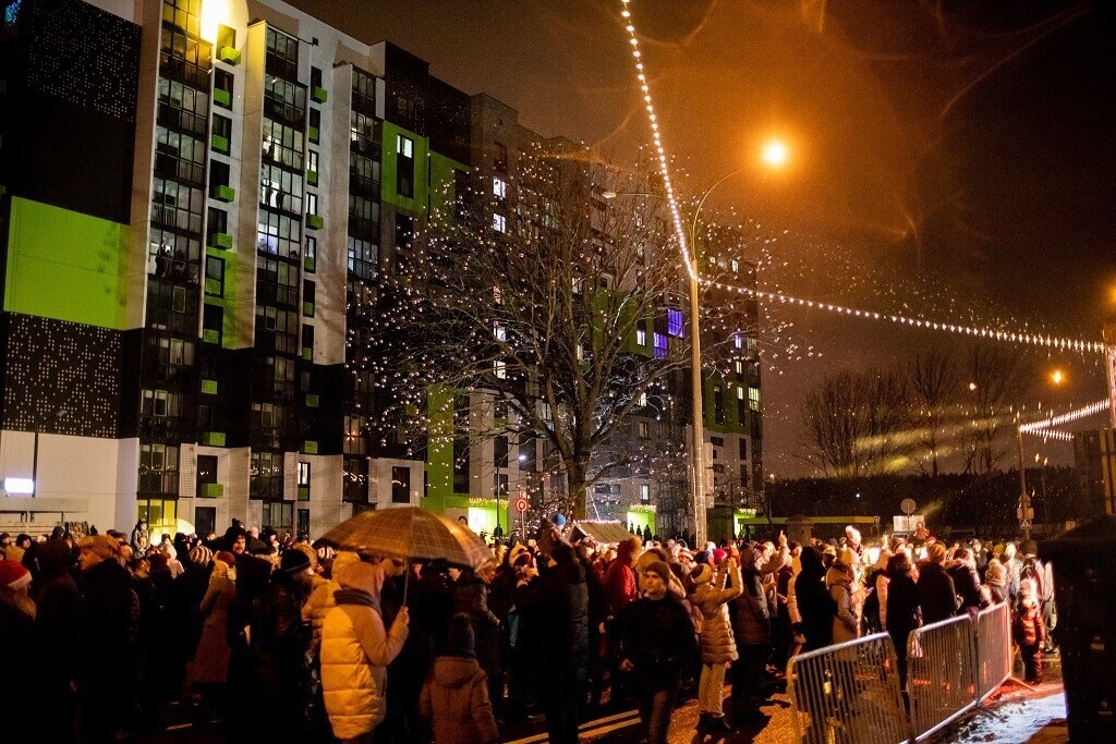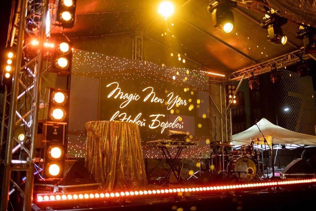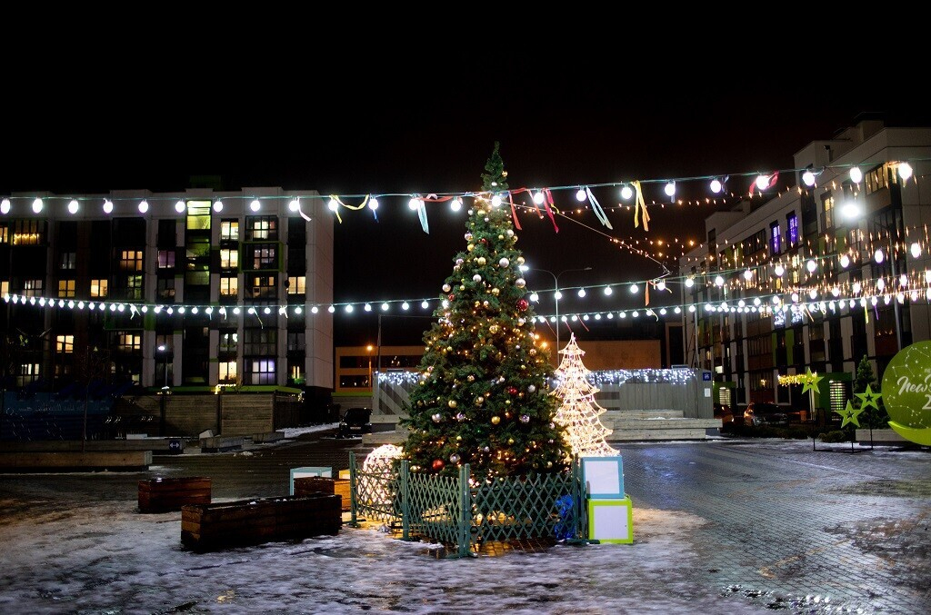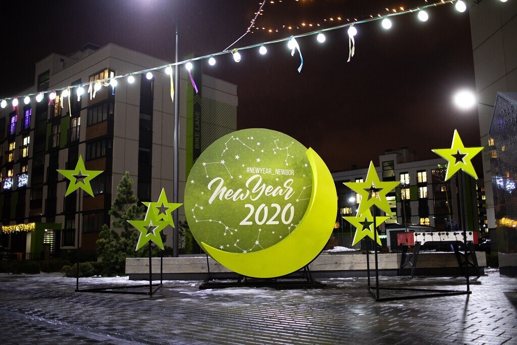 Новая Боровая обстоятельно подготовилась к созданию новогоднего антуража. На главной площади Кедрового квартала открылась небольшая фуд-зона, где можно было взять напитки и сладости. Улицу Микояна украсили гирляндами и блестящими шариками, а точкой притяжения стала концертная сцена в самом центре района. Не обошлось и без традиционной новогодней елки.