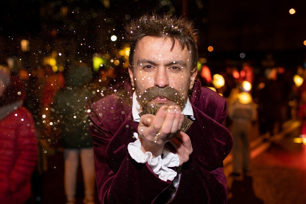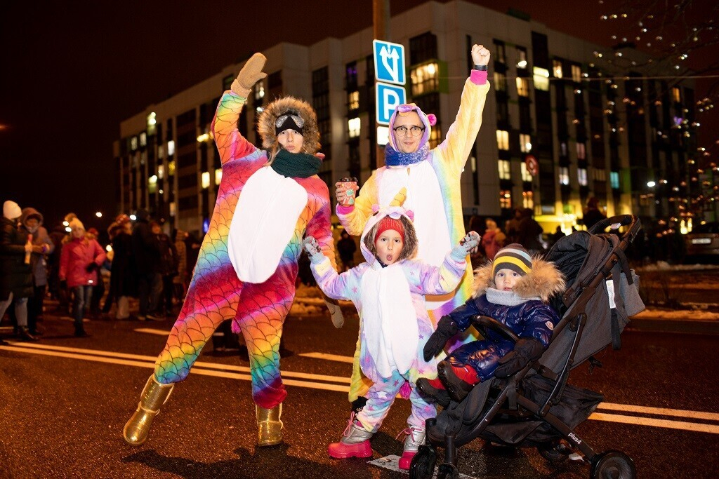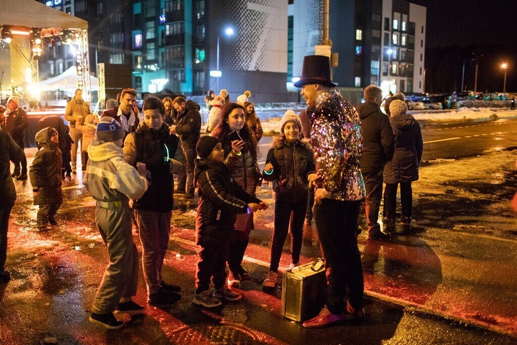 В это время подоспели сказочные персонажи с лотерейными билетами для гостей квартала. Жителям Новой Боровой вручали такие же, но заранее. Если кто-то пришел на праздник с пустыми руками, то мог испытать удачу наравне с остальными. Идею восприняли позитивно — волшебникам не пришлось скучать всю ночь. Из толпы стали раздаваться просьбы наколдовать снег. Договориться с небесной канцелярией не удалось, зато под рукой оказалась волшебная пыль — ею и осыпали всех желающих.