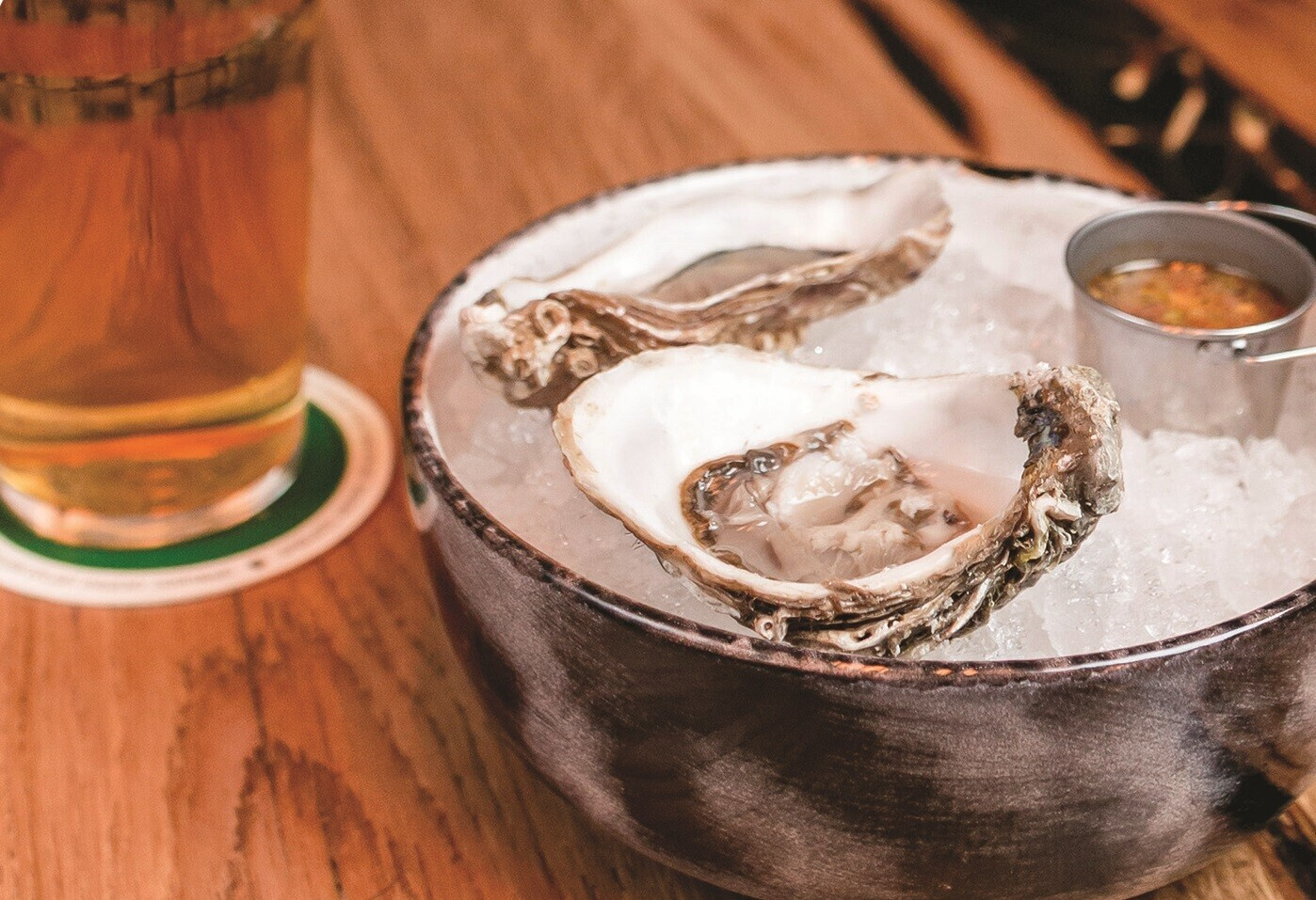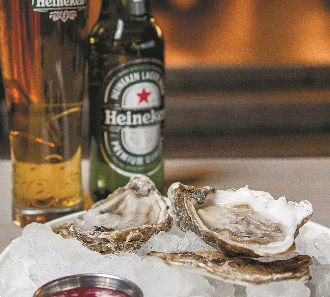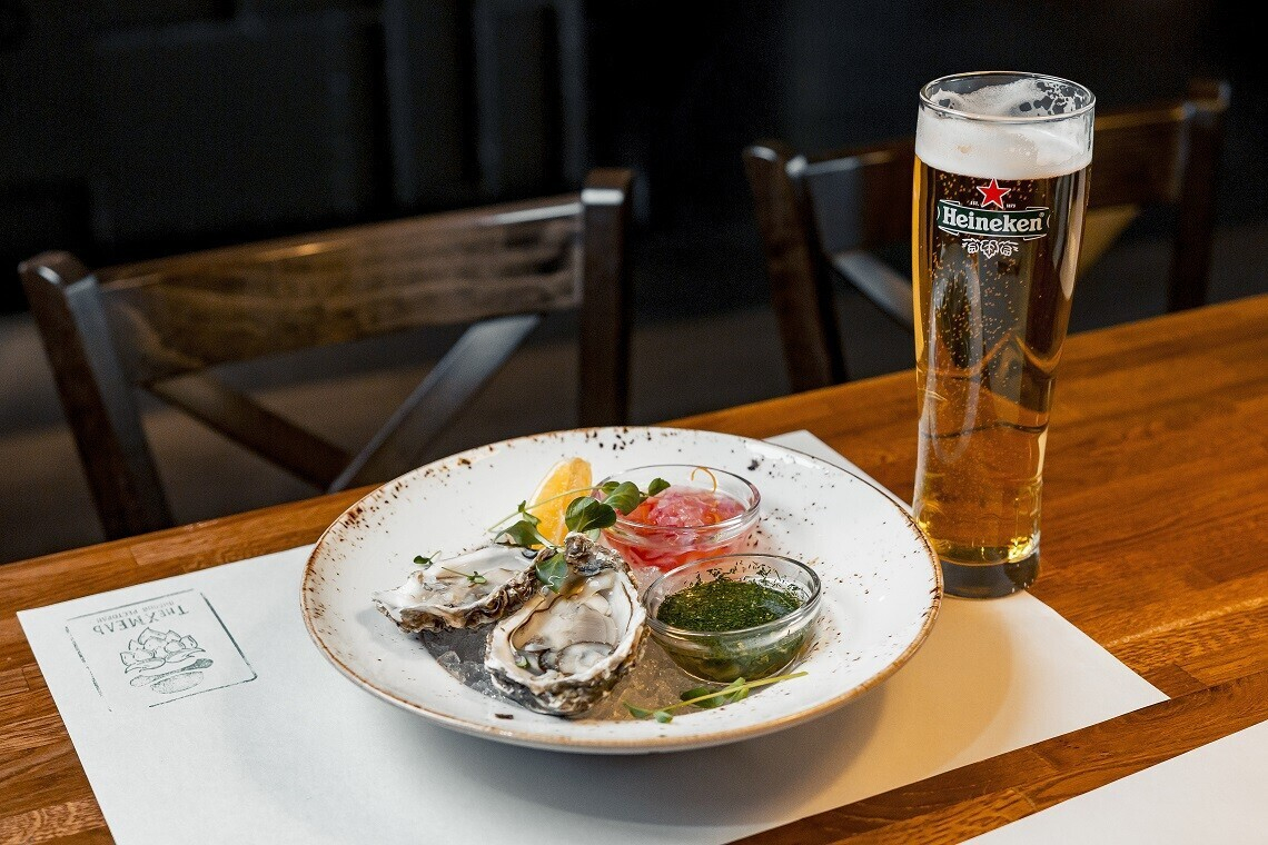 Сет #ХМЕЛЬНАЯ_УСТРИЦА — это две большие французские устрицы, пол-литра Heineken и авторский соус. Небанальное вкусовое сочетание можно будет распробовать в двух вариантах: охлажденный сет за 15 BYN и сет с запеченными устрицами за 18,50 BYN.
