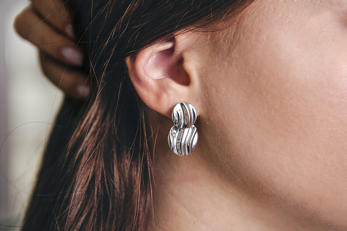 Если говорить об актуальности, Free Forms — один из самых популярных трендов в этом году. Ломаные линии и мятый металл, пластичность и асимметрия, которую хочется рассматривать вблизи и подолгу, — такая модель украсит как вечернее платье, так и минималистичный дневной комплект. Кстати, серьги довольно комфортные: в них можно проходить весь день. Цена со скидкой — от 94,68 рублей.