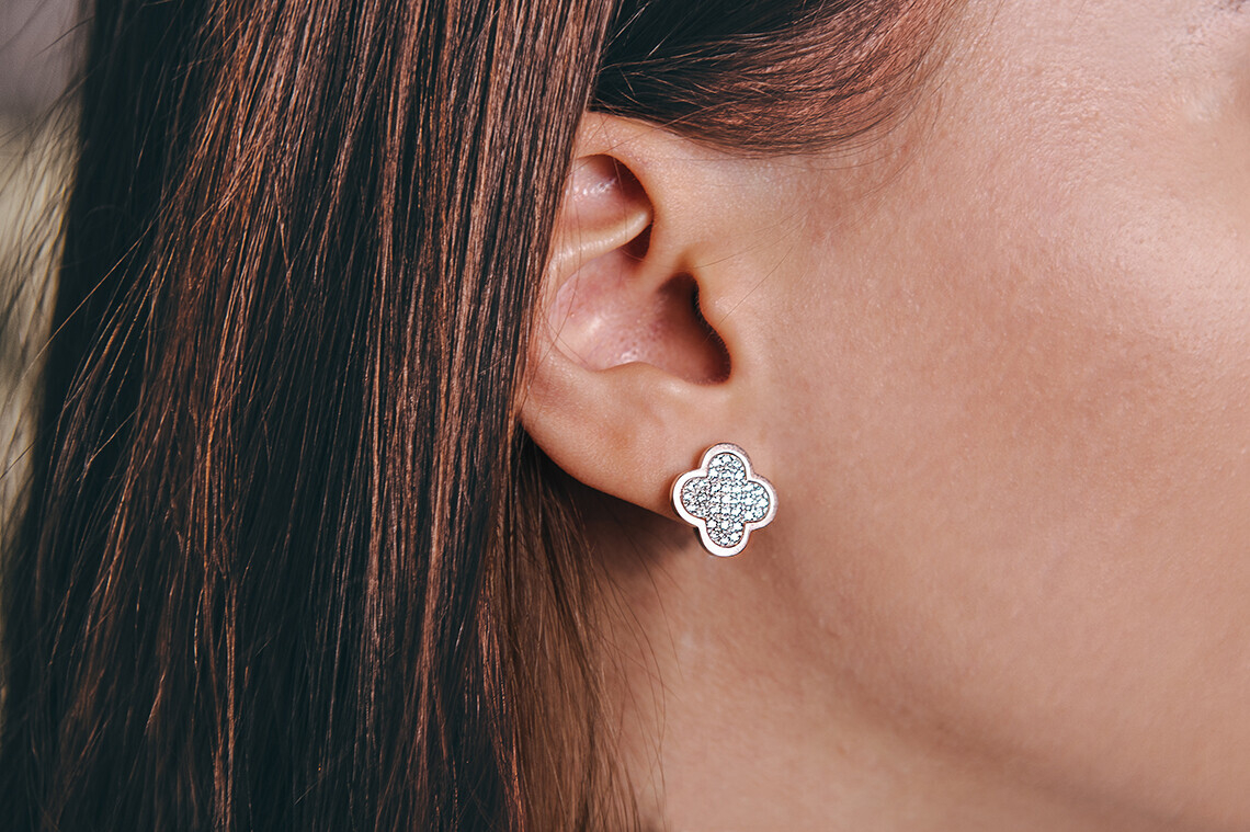 Лаконичное украшение в форме четырехлистника завоевало сотни сердец. В подобных ювелирных изделиях появлялись Кэмерон Диаз, Грейс Келли, Шэрон Стоун, Риз Уизерспун, Мэрайя Кэри. Неизменный символ удачи в серебре с позолотой и фианитами обойдется вам в 79,54 рублей с учетом скидки.