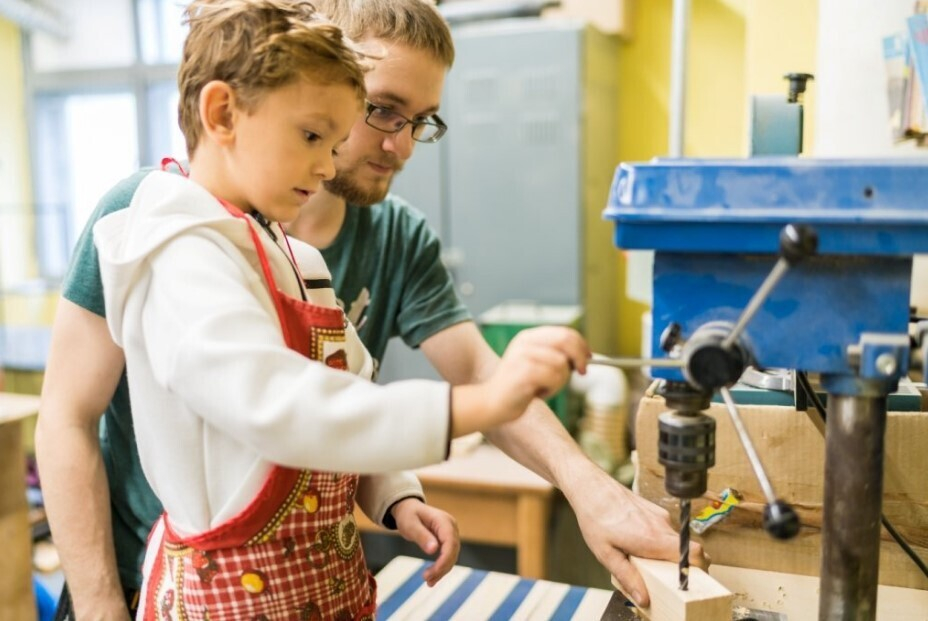Под присмотром профессионального столяра папа с сыном изготовят деревянный шедевр. Может, это будет кормушка, а может, копилка Дарта Вейдера — решать им. Главное — это время, которые мужчины семейства проведут вместе. Запись по телефону +375 29 377 44 13.