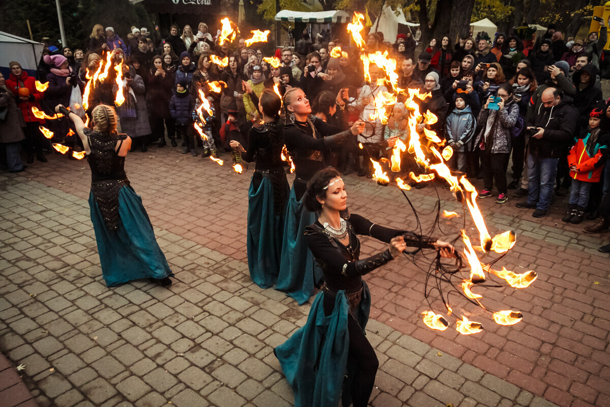 В программе мероприятия масштабное фаер-шоу, конкурс огненных и пиротехнических театров, обряды друидов, экстремальное трюковое шоу «Шотландская пехота» и выступление шотландских волынщиков.