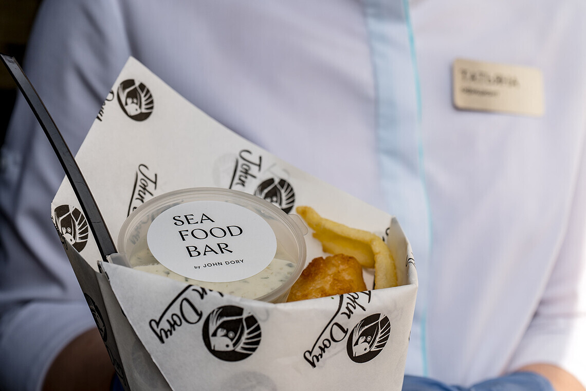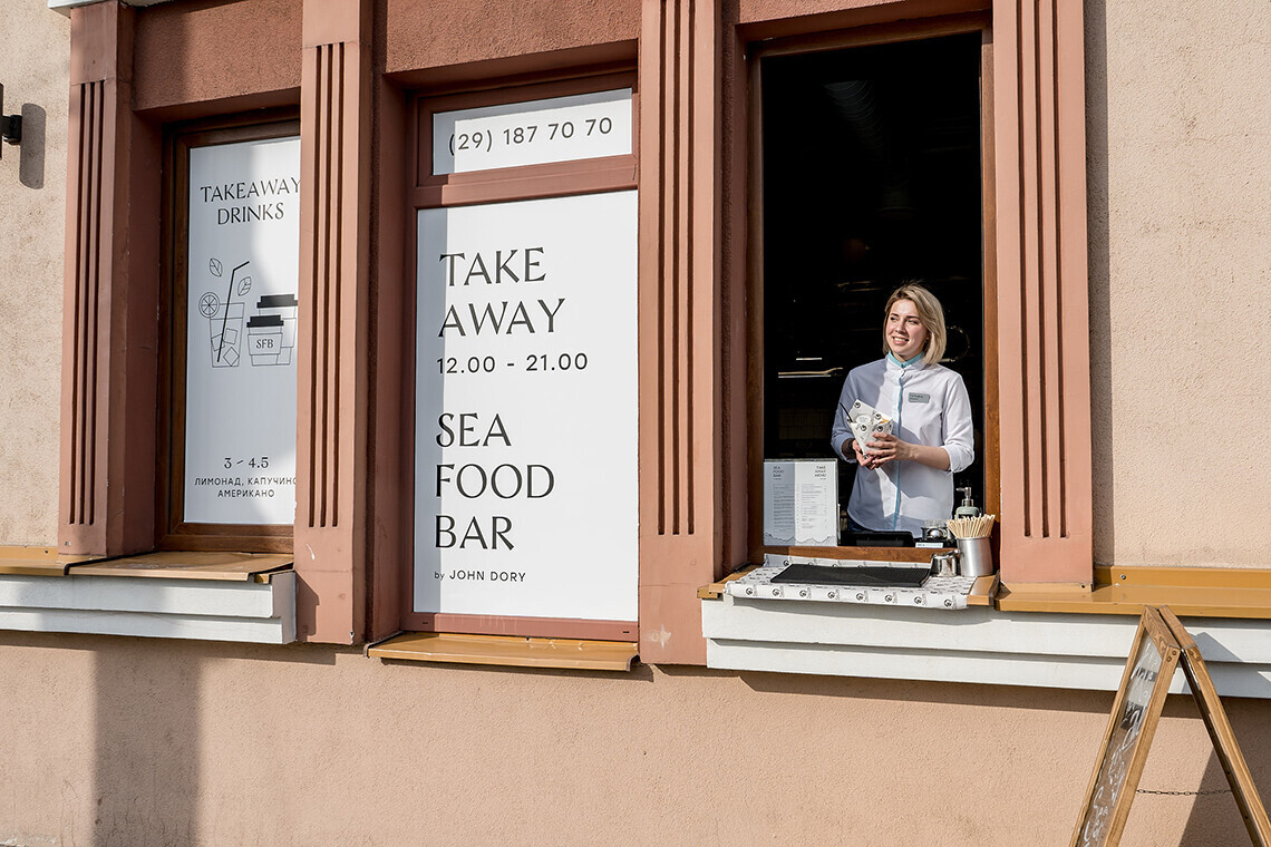 Ресторан SeaFoodBar by John Dory откроется не раньше июня. Пока же у вас есть возможность безопасно приобрести блюда из специального окошка приема и выдачи заказа. Время готовности — 15 минут.