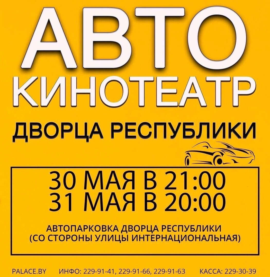 На верхней парковке Дворца Республики 30-31 мая начинает работу автокинотеатр на 22 парковочных места. Организатор проекта — государственное учреждение «Дворец Республики» Управления делами Президента Республики Беларусь.