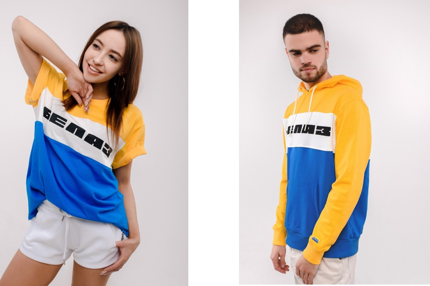 Компания «Ростмарк», которая занимается продвижением бренда «БелАЗ», выпустила коллекцию фирменной одежды, обуви и аксессуаров в желто-синих цветах и с логотипом завода.