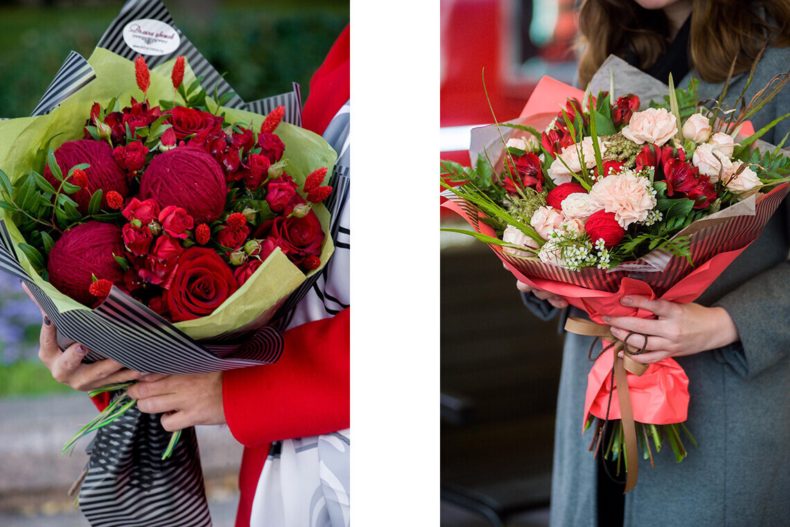 Букет слева — 95 рублей, букет справа — 85 рублей