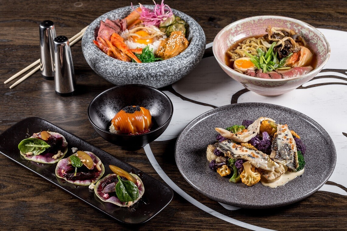 - Бибимбап! Пибимпап! Бибимбаб! Одно из популярнейших блюд традиционной корейской кухни. Рис «Нишики», маринованный куриный желток в кунжутном масле, печеный баклажан и сладкий перец, маринованные в мисо соусе, кисло-острые огурцы, капуста кимчи, жаренные грибы Вешенки, салат чука, маринованная говядина, свежий арбузный редис с кольраби