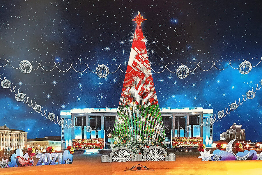 Пиксельная подсветка и фотозоны. Как украсят елки на главных площадях Минска