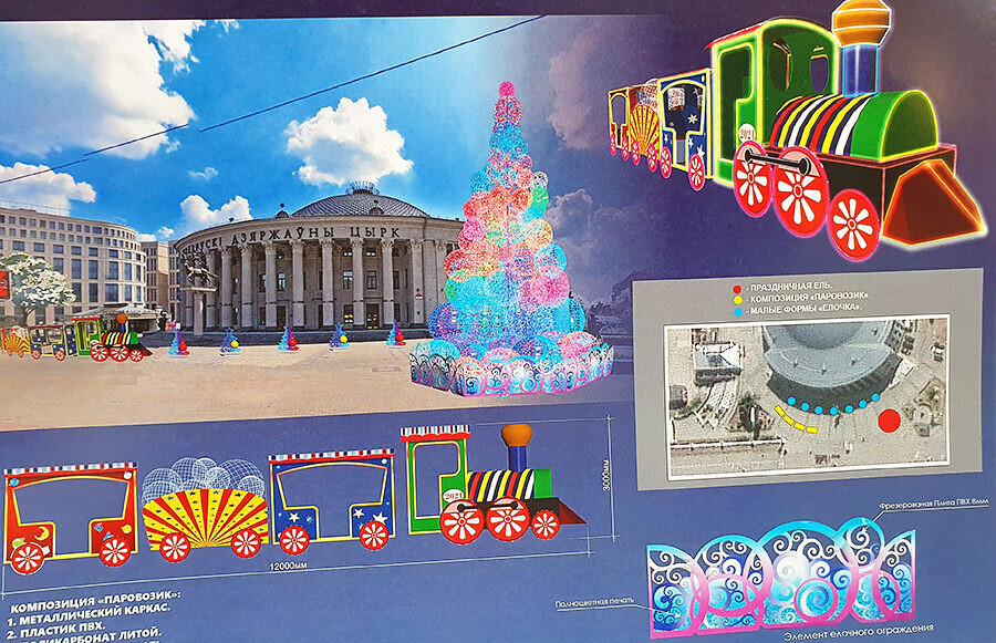 Елка, которая в прошлом году находилась на площади у городской ратуши, разместится у Белгосцирка. Впервые там появится детская фотозона в виде паровозика.