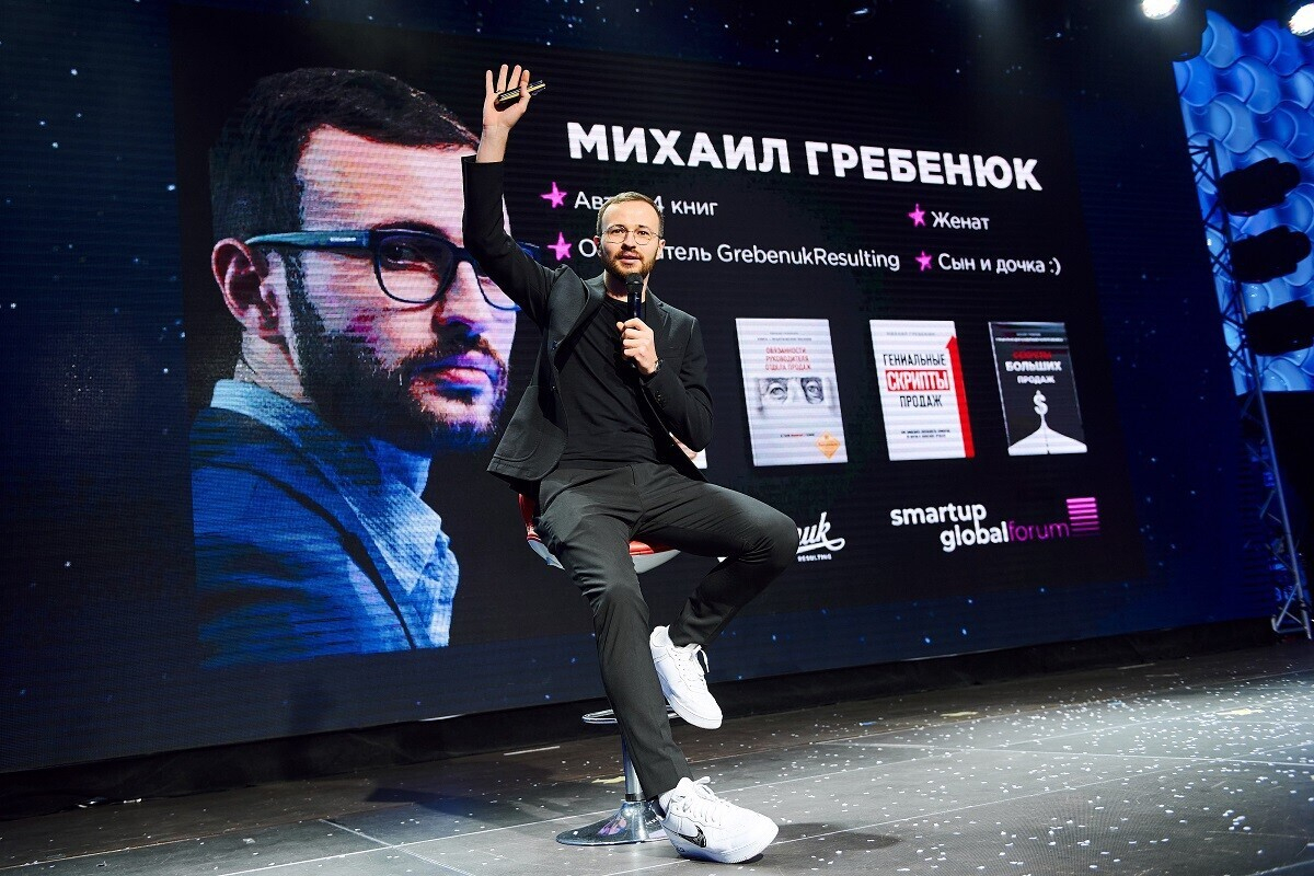 Далее на сцену вышел Михаил Гребенюк, эксперт по построению системы продаж «под ключ», основатель компании Grebenuk Resulting — команды №1 в России по созданию системы продаж под ключ. Он раскрыл тему холодных продаж, рассказал про проблемы и боли специалистов по продажам, типы воронок и их особенности, теорию обмена и систему мотивации специалистов.