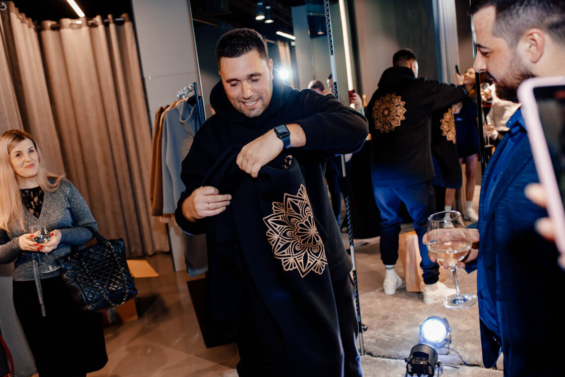 На минувших выходных в «Тренд парке» в ТРЦ Galleria состоялась презентация первой коллекции бренда «23:23». Трикотажные костюмы выполнены из высококачественного футера (80% хлопка) и декорированы золотыми мандалами.