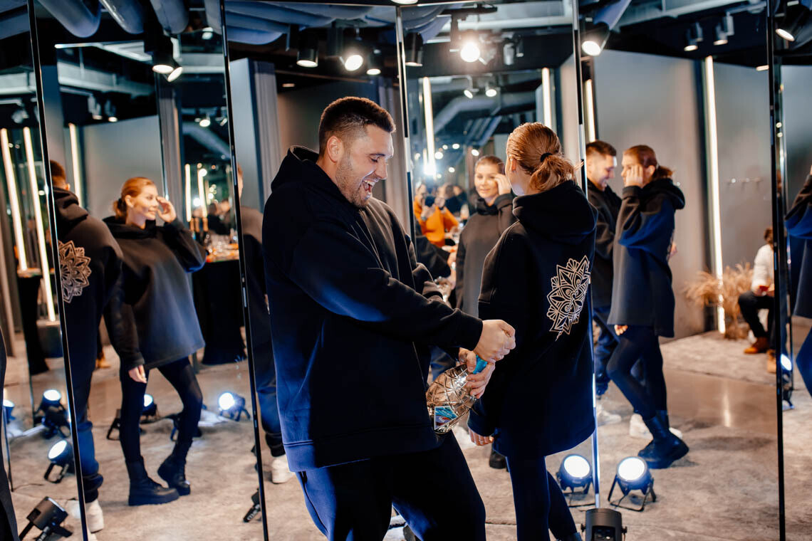По словам Артема, он многое успел сделать в творческой жизни, но всегда мечтал производить и что-то осязаемое. В лице супруги он увидел идеального партнера. В качестве названия бренда пара выбрала цифры 23:23, которые считает своим совместным оберегом. Главный посыл новой одежды — любовь, а также немного мистики и эзотерики в виде восточных мандал, призванных приносить счастье.