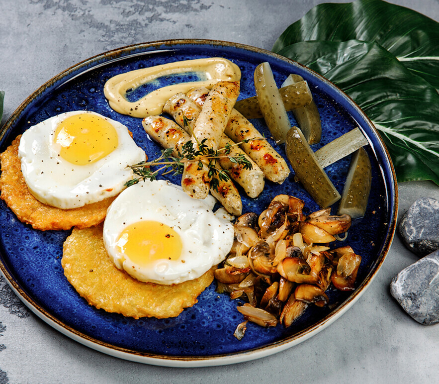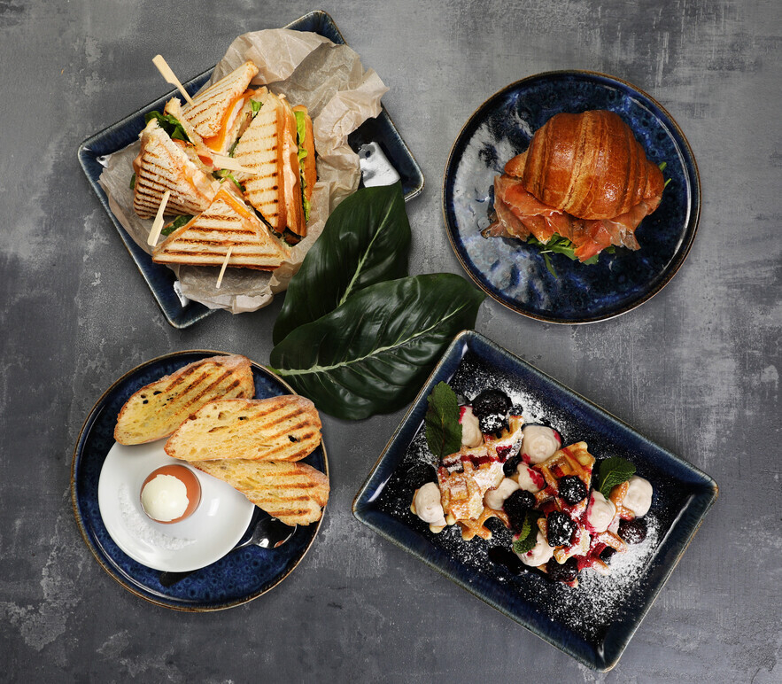 В меню каждый сможет найти что-то на свой вкус. Есть классические варианты: например, английский завтрак, традиционный белорусский, яйца Бенедикт, панкейки с манго и блинчики с творогом. Не обошлось и без авторских блюд: фирменные сырники с вишневым джемом, крок-мадам на венских вафлях, круассан с прошутто и специальный закрытый утренний бургер.
